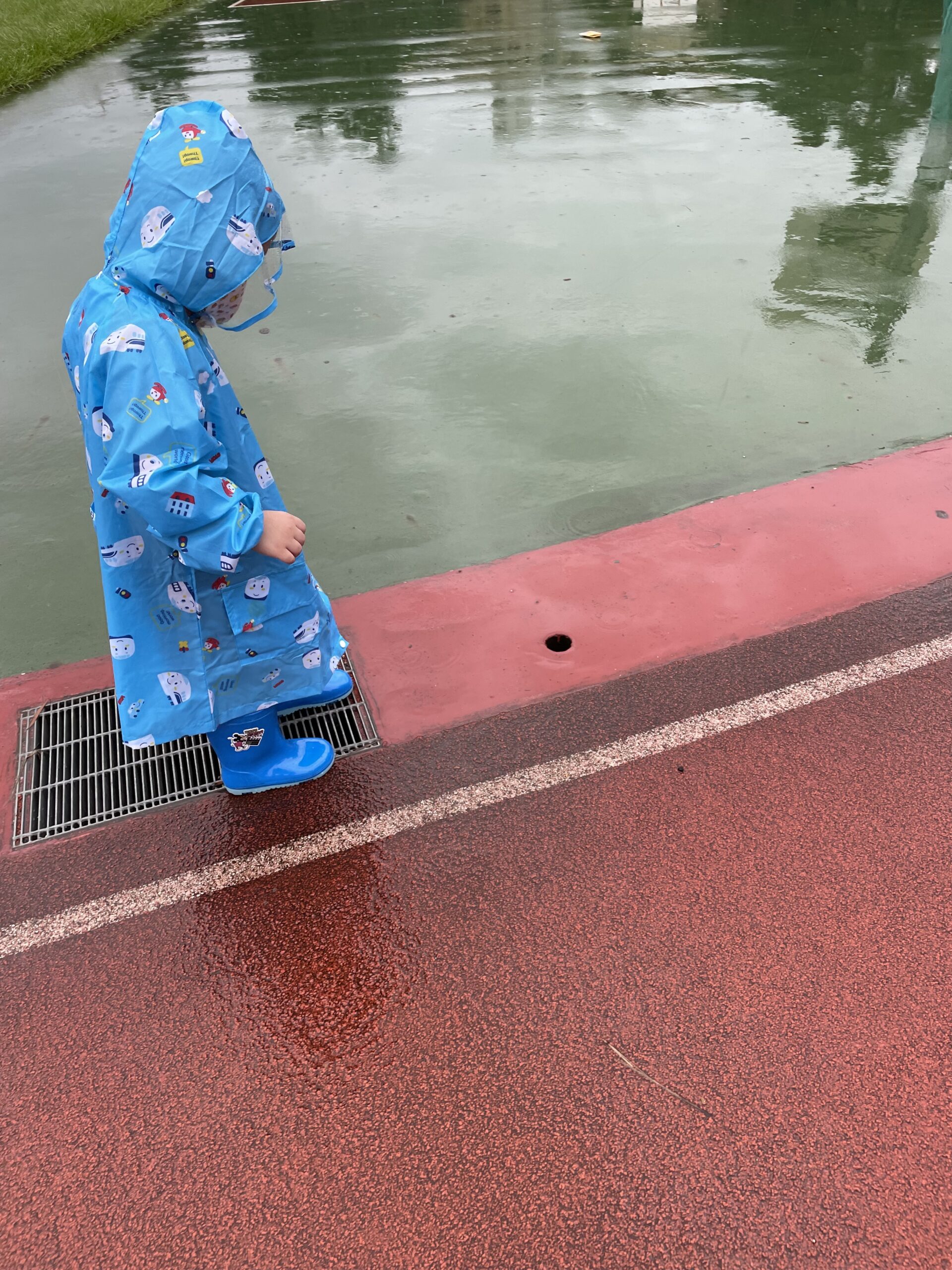 穿雨衣跑操場